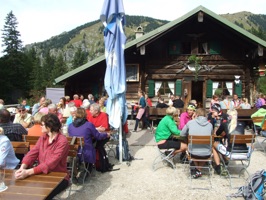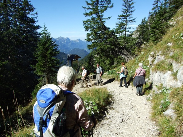 Die heutige Wanderung begann am Parkplatz des Füssener Eisstadions. Wir gingen auf einen Wanderweg über Bad Faulenbach zum Alatsee, auch „Tal der Sinne“ genannt. Doch leider mussten wir unterwegs, das erste Mal in dieser Woche, unsere Regensachen auspacken. Als wir vom Alatsee zur Saloberalm hinaufgingen nahm der Regen immer mehr zu, so dass wir oben angekommen von außen und innen ziemlich Nass waren. Wir zogen uns trockene Sachen an und wärmten uns in der Hütte wieder auf, wie heißt es noch mal – Bei schönem Wetter kann jeder laufen! Nach unserer Mittagsrast hatte es wieder aufgehört zu regnen und wir konnten trockenen Fußes die Altstadt von Füssen erreichen. Ein kleiner Absacker und / oder Einkaufsbummel in der Fußgängerzone war für die meisten noch drin, bevor wir wieder zurück ins Hotel fuhren.