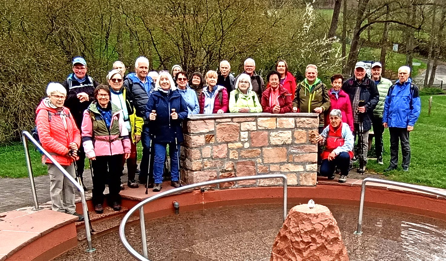 Für Organisation und Führung der Wanderung war Christoph Weckbecker verantwortlich. Starpunkt in Oberrodenbach war das Restaurant „Indian Curry House“ wo wir uns auch nach der Wanderung stärkten. An der Barbarossaquelle war der erste Wander-Stopp. Hier entstand der „Gruppenbild-Schnappschuss“.