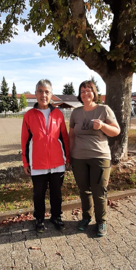 TVL-Monatswanderung „Rund um Lettgenbrunn“ am 07.09.2025. Marga Schäfer, hat zu Beginn des Wandertages Kerstin Harms für 25 Wanderungen mit dem TVL-Wanderschuh in „Silber“ ausgezeichnet.