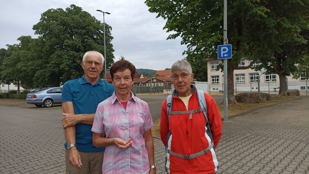 TVL-Monatswanderung „Spessartspur Gundhelm“ am 13.07.2025. Marga Schäfer, Organisatorin der TVL-Wanderer, hat zu Beginn des Wandertages Reinhard und Hannelore Weis für jeweils 50 Wanderungen mit dem TVL-Wanderschuh in „Gold“ ausgezeichnet.